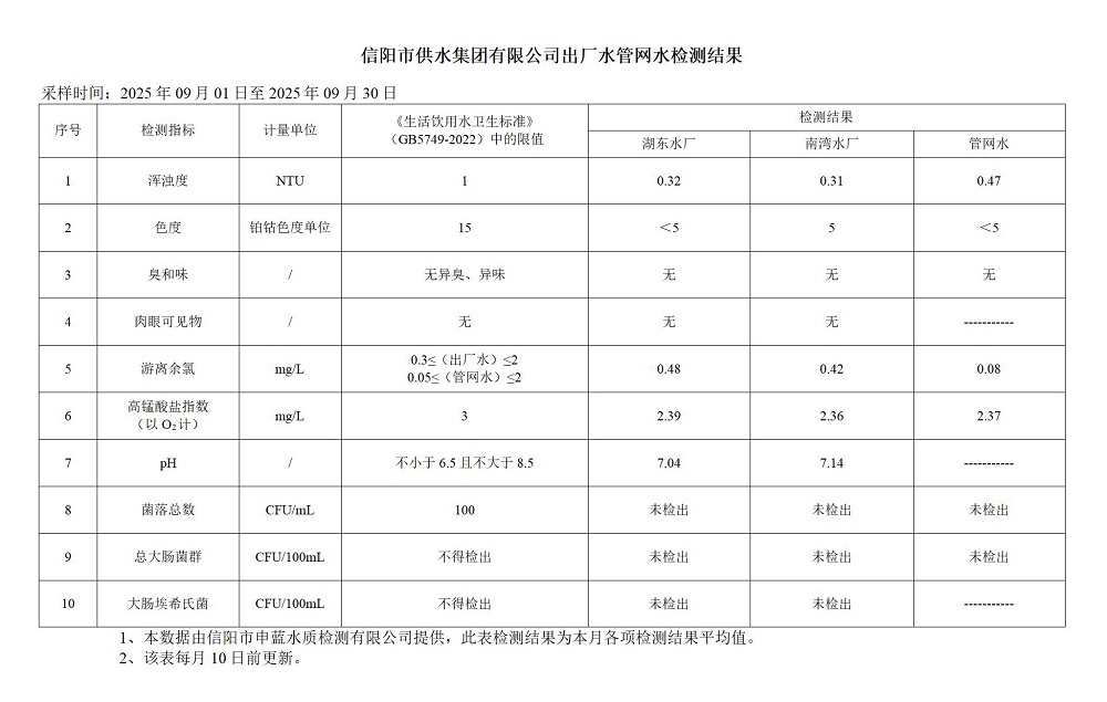 9月-出廠水、管網水常規指標檢測
