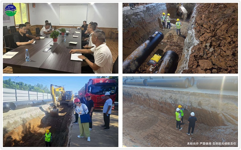 走進陜煤再生水管道工程建設現場,耳邊不時傳來工程機械的轟鳴聲,一個個快速推進的里程碑節點將項目建設的“熱度”拉滿。8月1日,破水穩層,分段施工;8月4日,開挖土方(1+017-0+900)樁號;8月13日機械開挖土方(0+900-0+790)樁號;8月17日0+900-0+790鋪砂墊層并埋管;8月19日0+900-0+790分層回填沙腋角;8月24日 0+790安裝排氣井三通;8月27日0+790-0+756夜間過路;8月30日0+790-0+756澆筑過路彎頭支墩,排氣井墊層。一道道工序有條不紊,一根根DN800管道安裝到位,管線不斷向前延伸。盛潤公司項目部充分發揚團隊精神、契約精神,加強與各單位的合作溝通,全體參建人員發揚齊心協力的團隊精神,鉚足干勁,沒有絲毫猶豫,迎難而上。缺少再生水管道施工經歷,項目部就不斷學習摸索,無數個夜晚,大家圍坐在一起,不斷精細施工工藝流程,反復優化和論證施工方案和細節;夏季白天高溫,經常在夜間施工,項目部便提前對吊裝作業時的每道工序進行反復演練和糾偏;基礎地基復雜不穩定,項目部在基礎開挖、鋪設墊層和回填作業時嚴把質量關;混凝土支墩澆筑工序一旦開始就必須保持連貫性,項目管理人員在泥濘的現場通宵達旦地值守,既要保質保量,又要嚴守安全紅線,確保不出任何差池,從制度、流程、管理上進行全面改進,項目品牌形象持續提升。